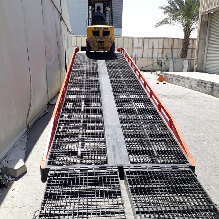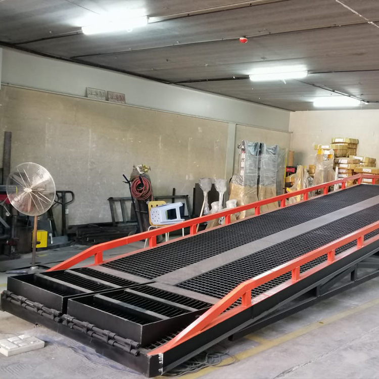 A movable container forklift ramp is a portable solution designed to streamline material handling tasks by giving forklifts safe and efficient access to shipping containers or elevated platforms. Built for dynamic logistics environments, it allows forklifts to transition smoothly between ground level and container interiors, significantly speeding up loading and unloading operations. These ramps are often engineered with anti-slip surfaces, secure locking mechanisms, and optional handrails to reduce the risk of accidents and ensure stability during use. Their mobility and safety features make them essential equipment in warehouses, freight terminals, and construction sites where operational speed and adaptability are key.